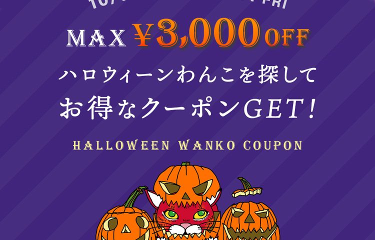 最大3,000円クーポンゲット!仮装ワンコを探せ!ハロウィーンイベント開催中