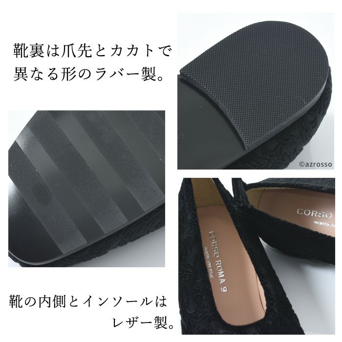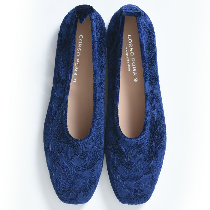 23cm-25.5cm|ベルベット スクエアトゥ フラットシューズ バレエシューズ レザー 刺繍 レディース イタリア ブランド コルソローマ9 CORSO ROMA 9 ブラック 黒 ネイビー 紺