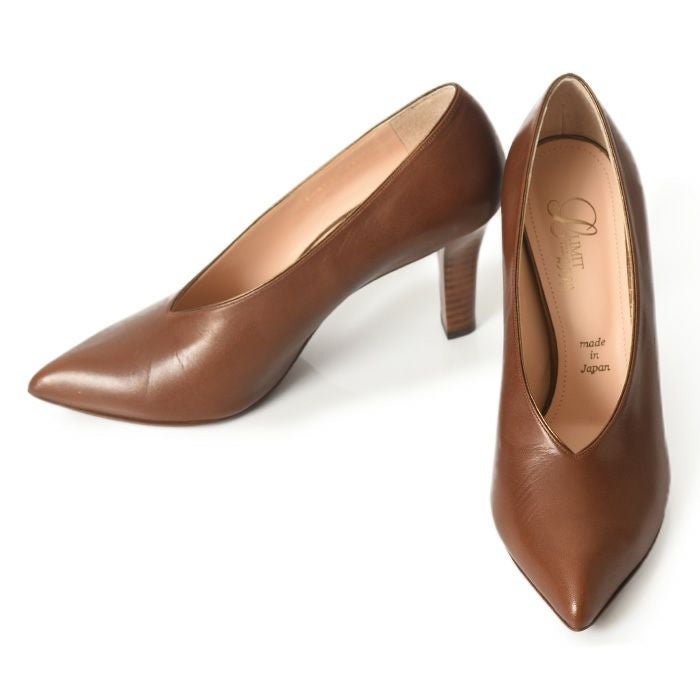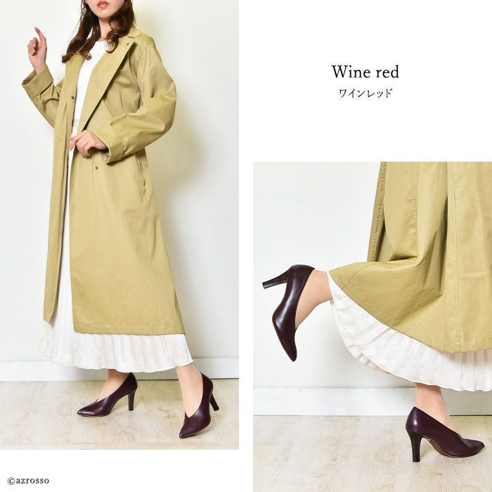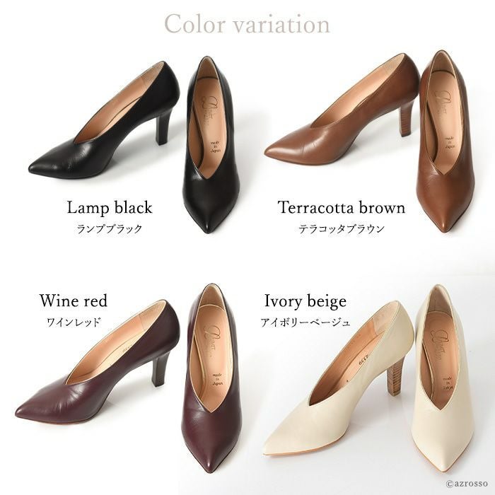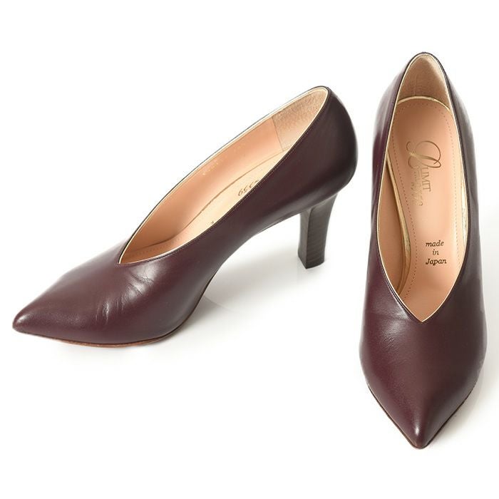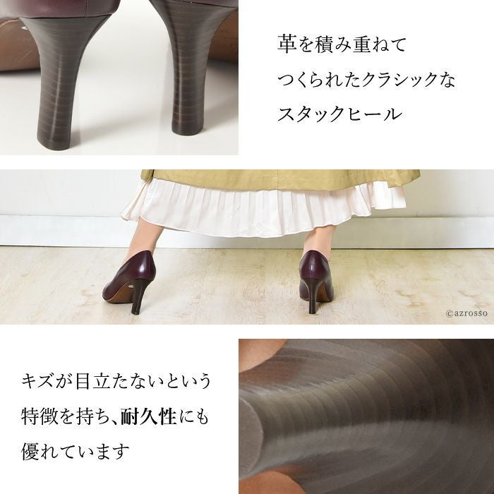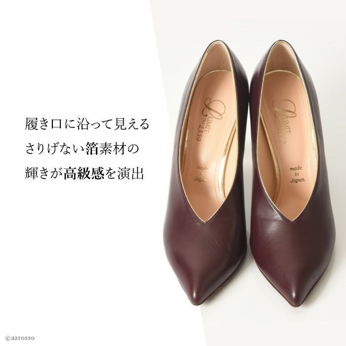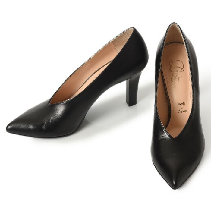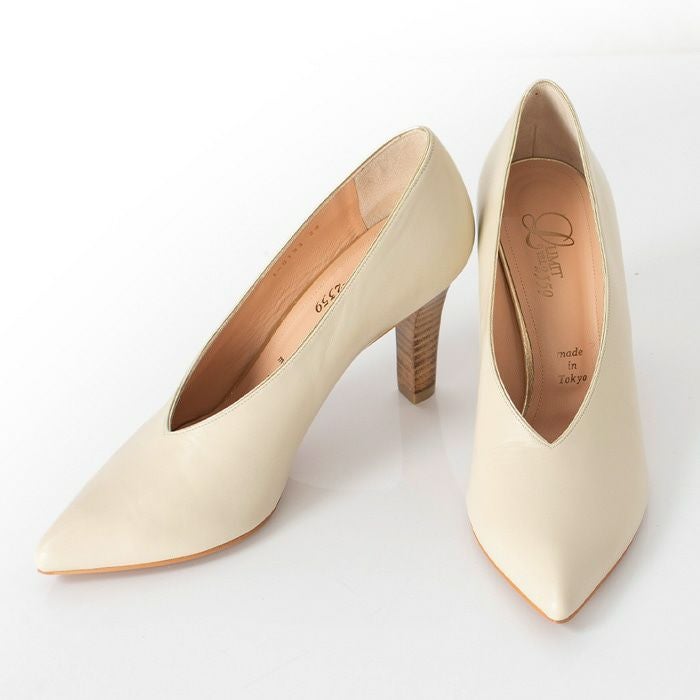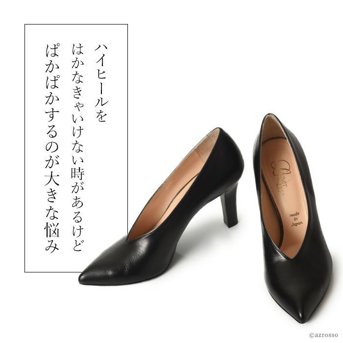 21.5cm-25cm|ヒール8cm レザー Vカット スタックヒール パンプス|リミットティル2359