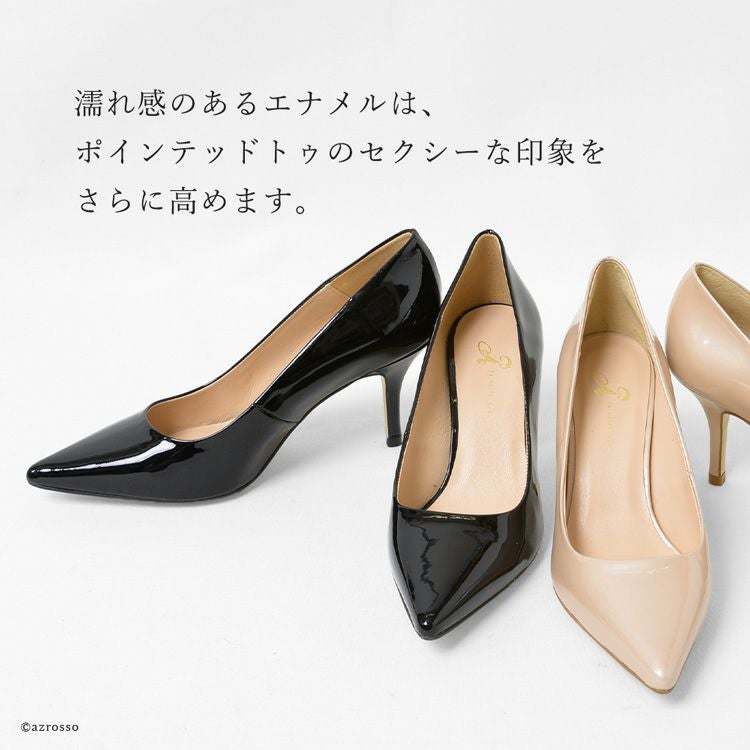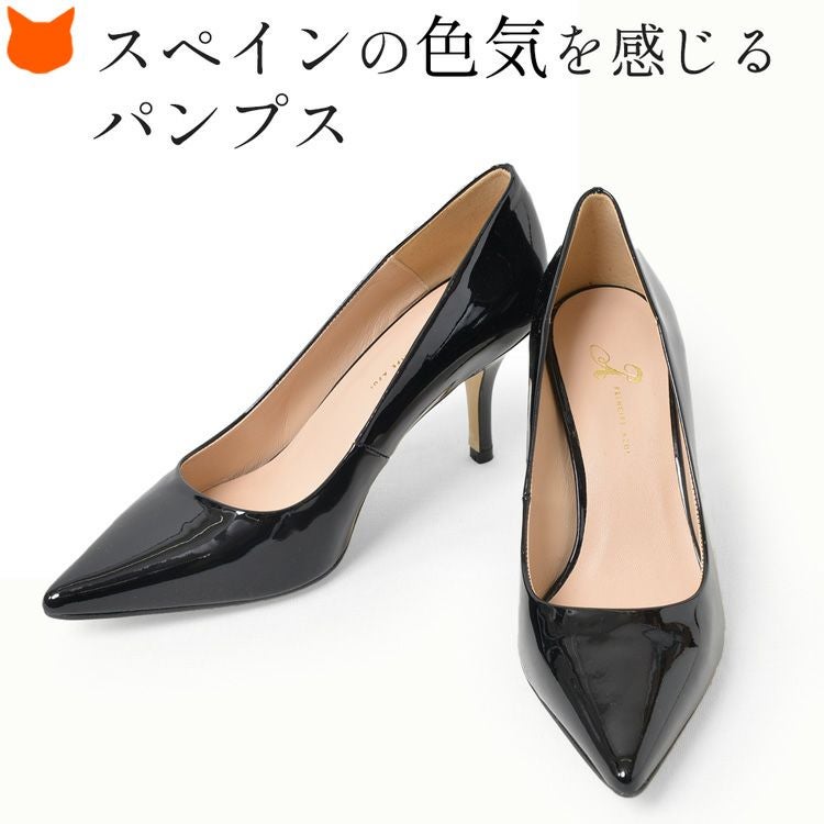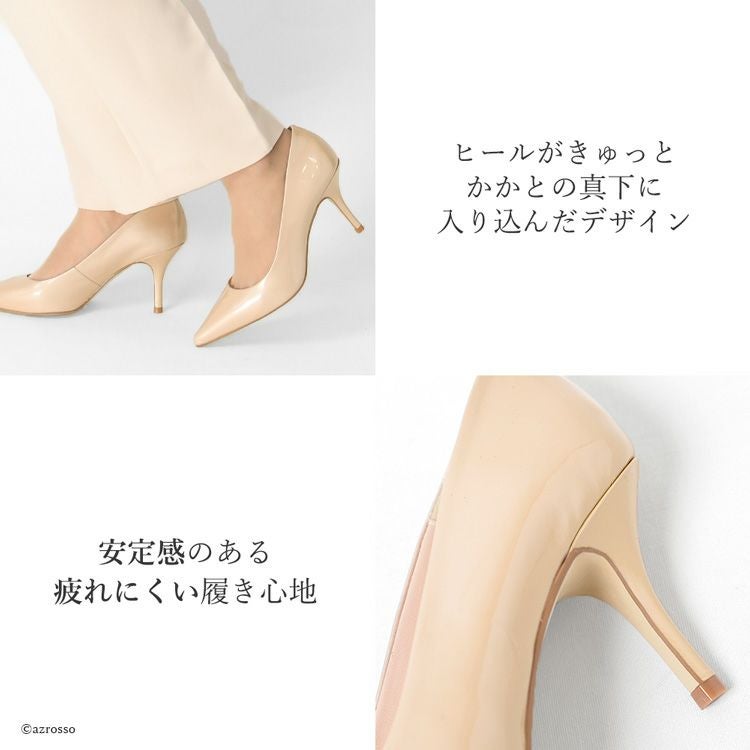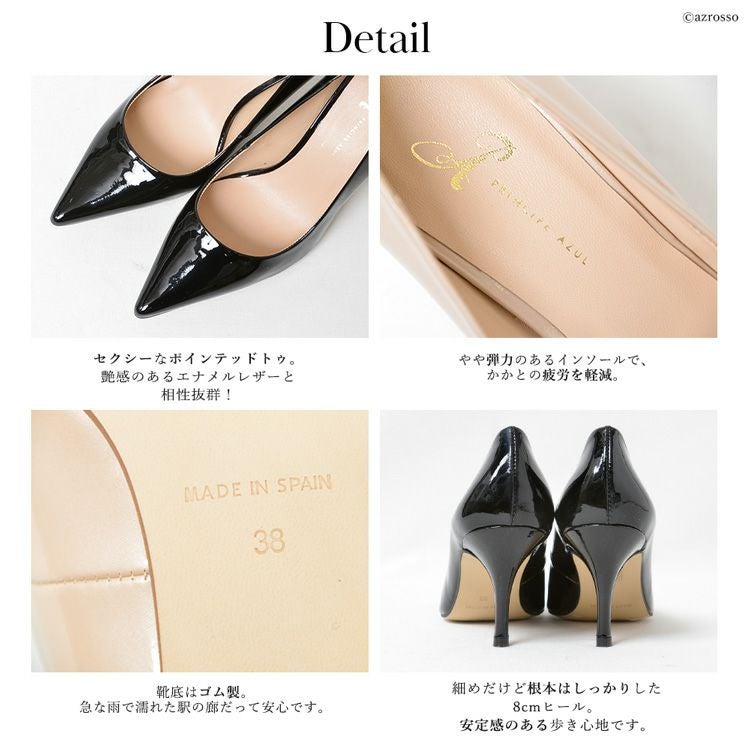 22cm-25.5cm│セクシーな美脚をつくる ポインテッドトゥ エナメルパンプス 8cm ヒール 黒 ベージュ スペイン製