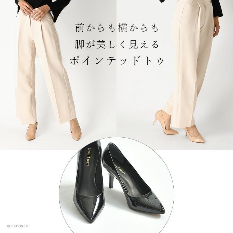 ▼特徴:ハイヒール|ポインテッドトゥ|美脚|甲浅|プレーンパンプス|エナメル|パテント|衝撃吸収インソール