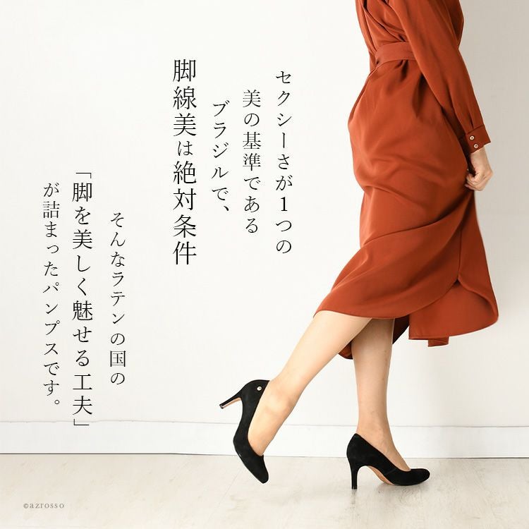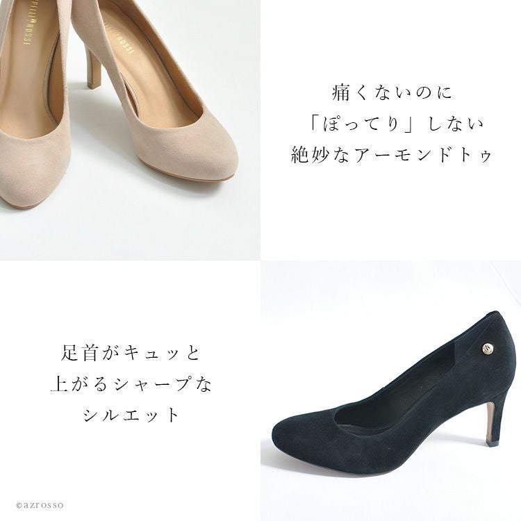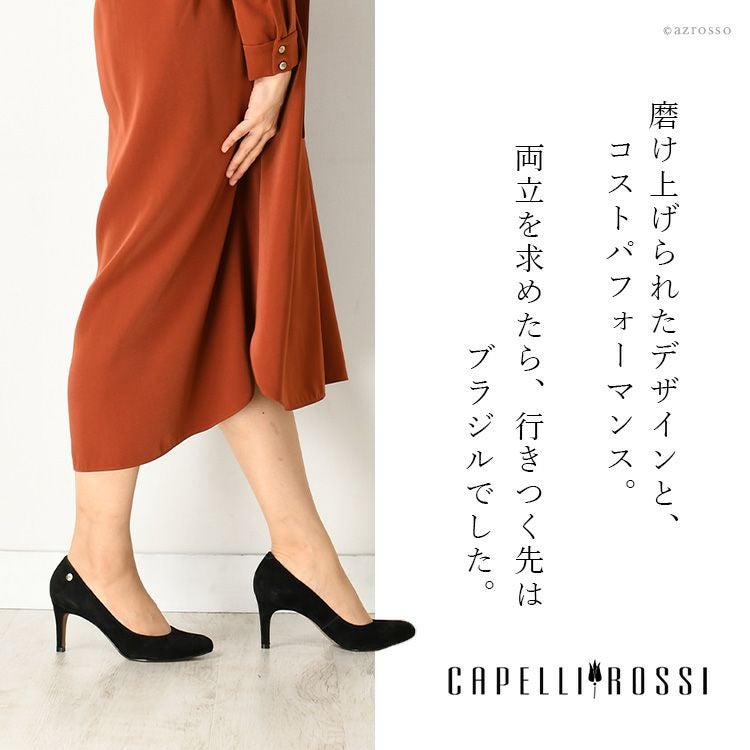 ブラジルブランド CAPELLI ROSSI 本革 美脚 スエード パンプス アーモンドトゥ 甲 幅広 ヒール8cm カペリロッシ