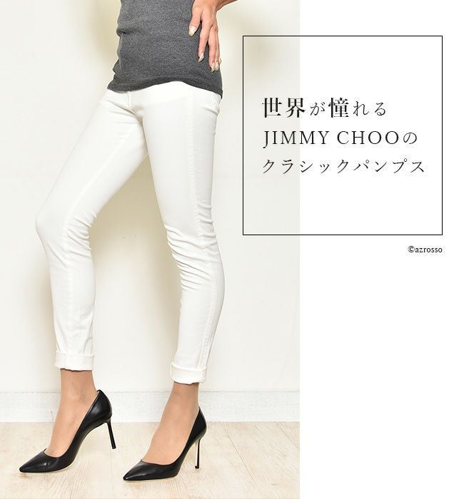 ジミーチュウのハイヒールは痛くないハイヒールのため「魔法の靴」とも称されています。沢山の人に見られるシーンや場所、ちょっと背伸びした場所へのお出かけなど、特別な日用として重宝するのがジミーチュウ(JIMMY CHOO)のハイヒール。シックで知的な女性を演出してくれるキッドレザー。最近あまり質の良くないキッドレザーのパンプスも見かけますが、ジミーのパンプスは柔らかくしなやかな高級な革のみを使用しています。シンプルなパンプスほど質の良さで勝負。シンプルなコーデこそ、品質が問われますがシンプルイズベストにふさわしい一足です。ブラックとピンクベージュはもっていて困ることのない鉄板カラーでもあります。