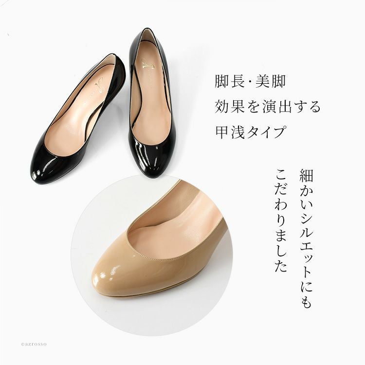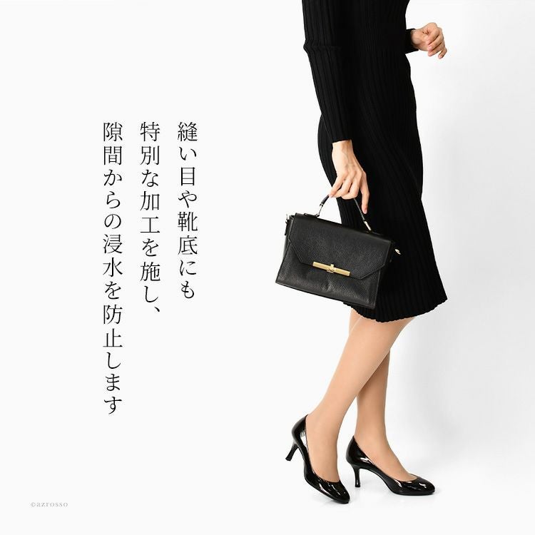 日本製 エナメル パンプス 本革 撥水加工 パンプス ブランド 幅広 レディース 靴 ラウンドトゥ パンプス フォーマル セレモニー 卒業式 入学式 晴雨兼用