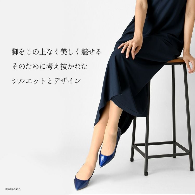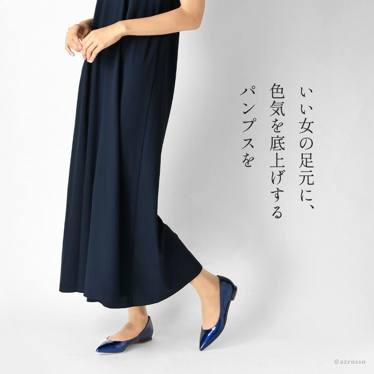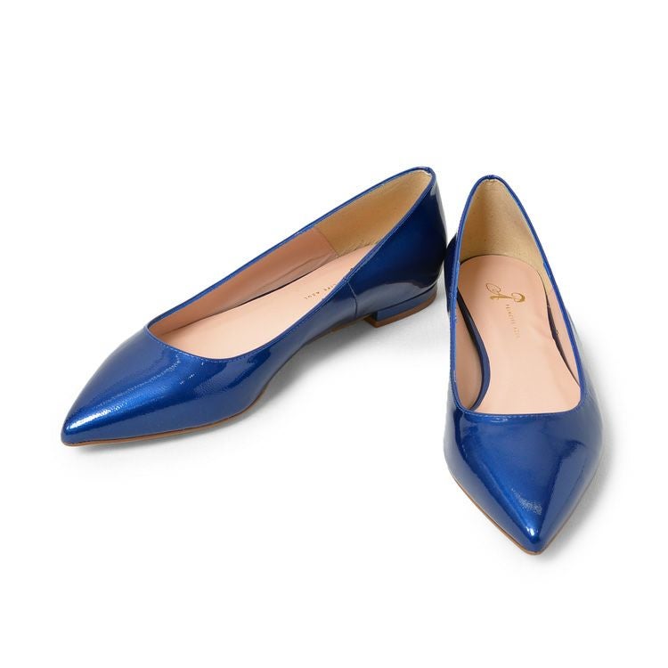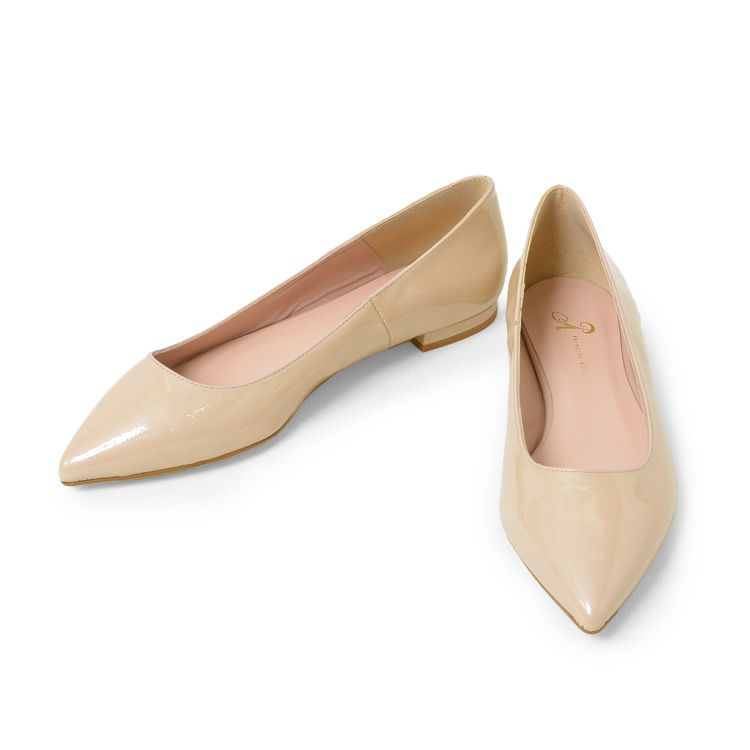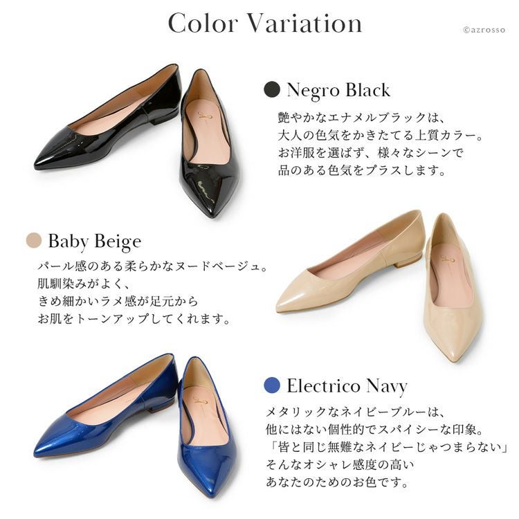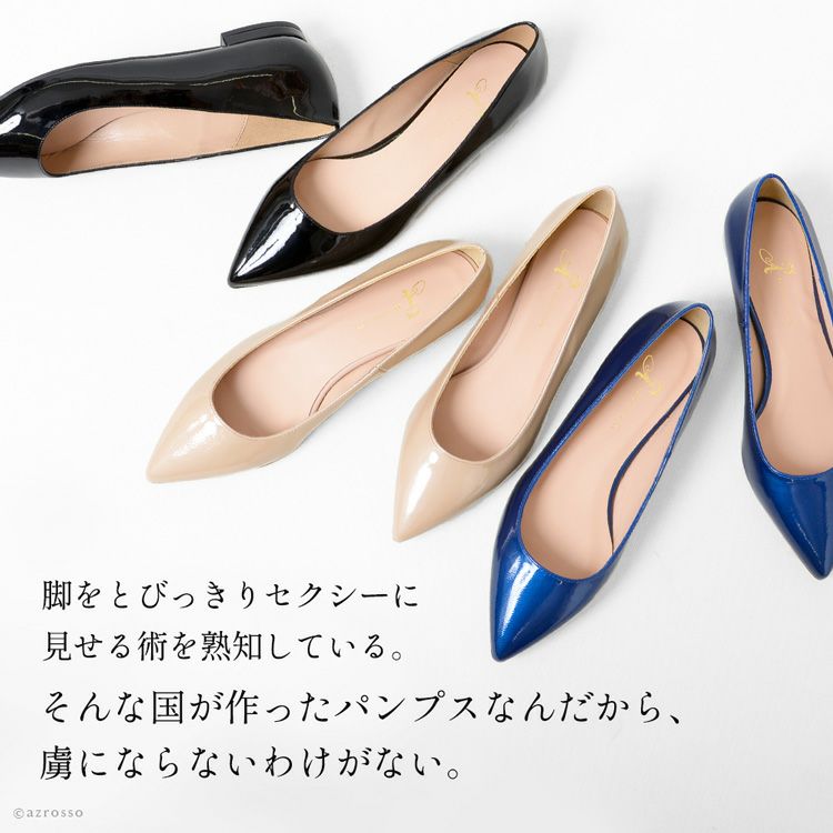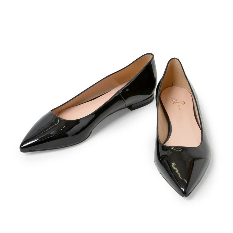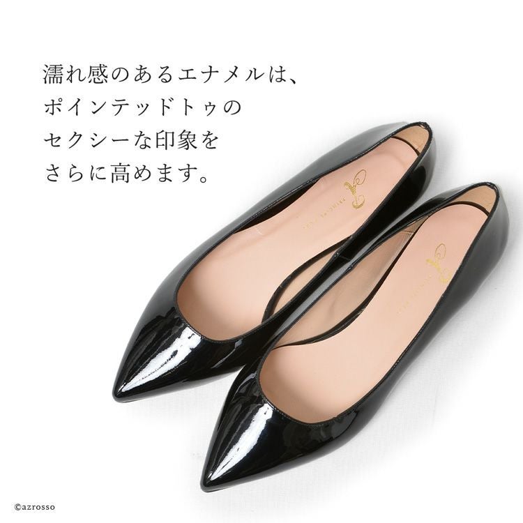 23cm-26cm│ぺたんこなのにセクシーな美脚をつくる ポインテッドトゥ エナメルパンプス ローヒール 黒 ベージュ ネイビー スペイン製