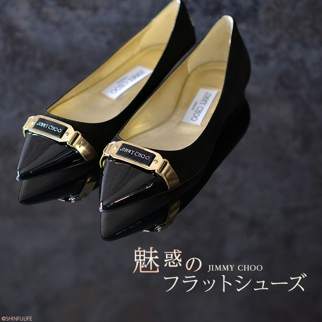 5. 23cm-25cm|フラットパンプス GALAXY ギャラクシー エナメルパンプス ポインテッドトゥ JIMMY CHOO ジミーチュウ 133 ブラック ベージュ 正規品 ぺたんこ バレエシューズ