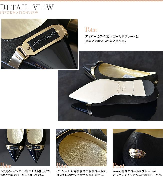 人気ブランドジミーチュウならではのまねできないオリジナルの可愛さ。インソールも高級感溢れるゴールドカラーで脱いだときのオシャレ感も抜群です。