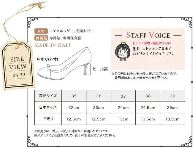 モデル…甲薄・幅広の23cm。素足、ストッキング着用で36がちょうどよかったです。