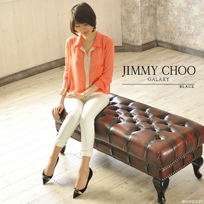 「ジミーチュウ」のロゴがワンポイントとして入っているとっても素敵なギャラクシー。細部まで作り込まれたプレートは存在感抜群!ヒールはフラットタイプでとても歩きやすいのでヒール疲れやマタニティの方におすすめです。