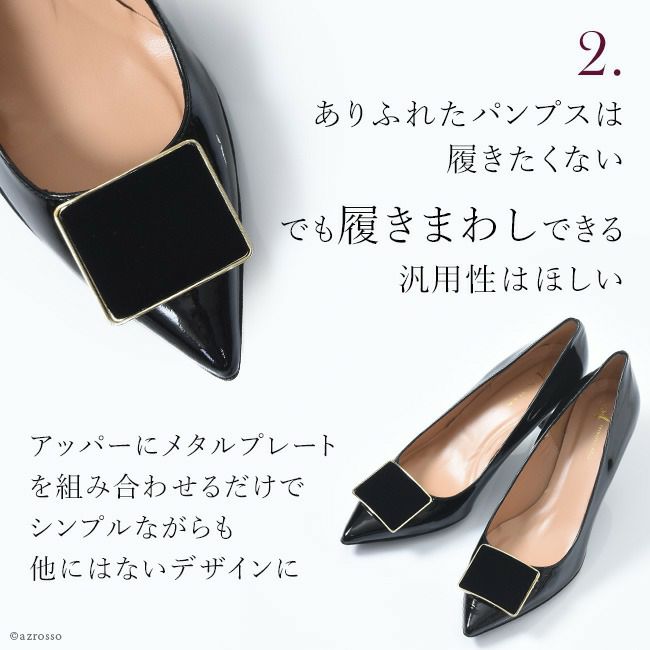 でも、ポインテッドなアッパーにメタルフレームのプレートを組み合わせるだけで、シンプルでオフィス仕様ながら、他にはないパンプスに仕上げました。