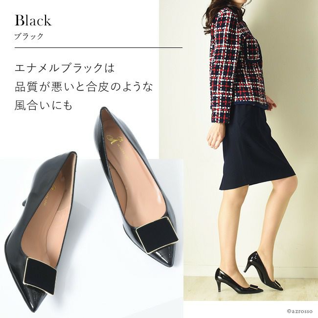 そのうえ、上質なエナメル素材に、アッパーのプレートからチラ見せするポインテッドトゥで履きやすいエレガンスの完成です。