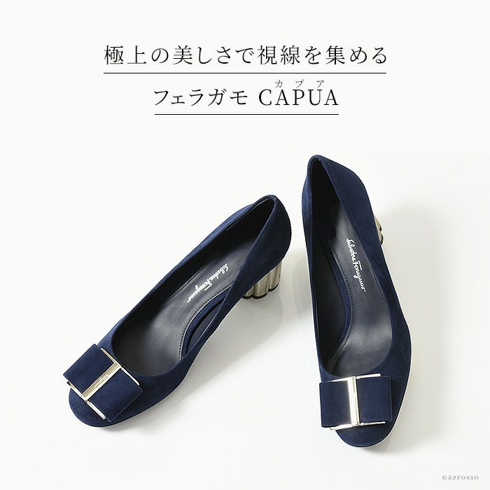 残23cm-26cm|フェラガモ カプア パンプス スエード レザー チャンキーヒール ボルドー レッド ブルー 青 Salvatore Ferragamo レディース 正規品 CAPUA