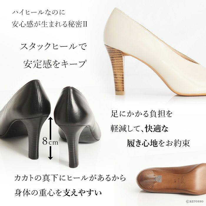 21.5cm-25cm|ヒール8cm レザー Vカット スタックヒール パンプス|リミットティル2359