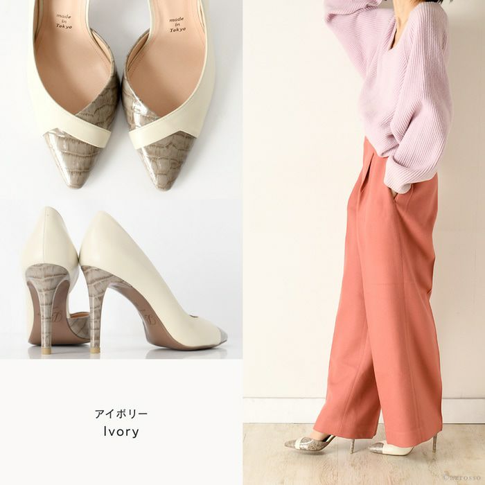 白いパンプスは、コーディネイト全体を垢抜けさせ、足元から明るい雰囲気にしてくれる効果があります。それが上質なレザーならば、なおさら美しい仕上がりに。周囲の視線を釘付けにしてください。