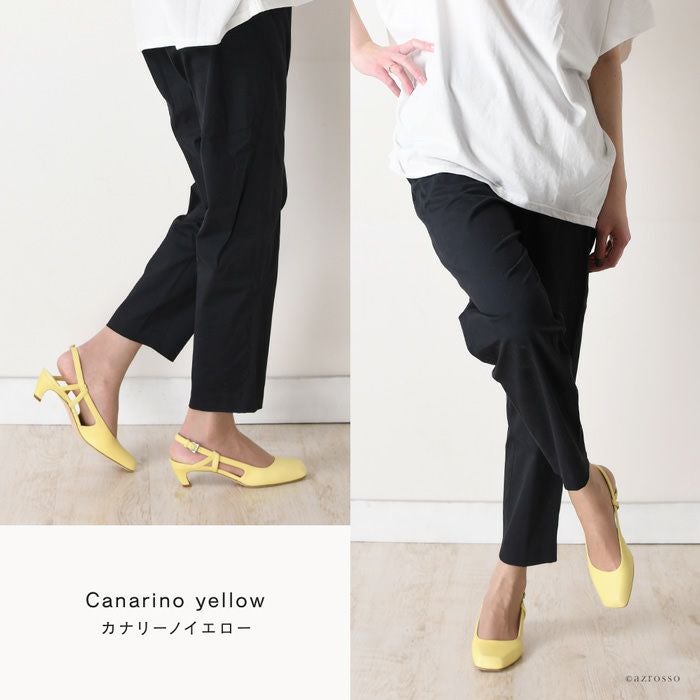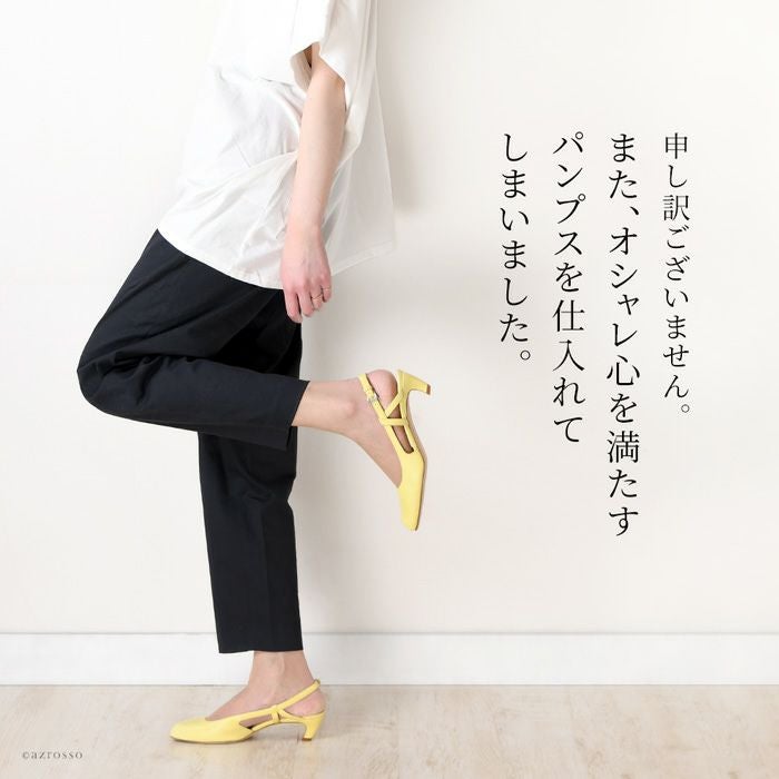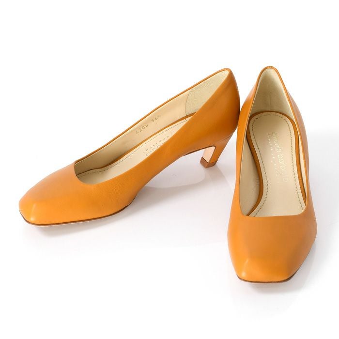 レザー素材のイエロー・オレンジパンプス