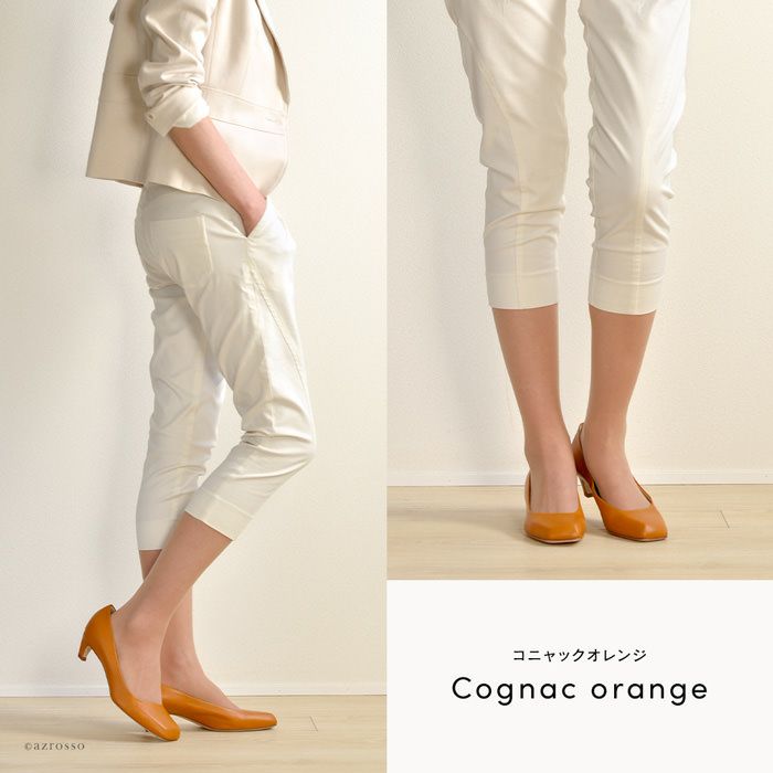 23cm-25cm│レザー パンプス スクエアトゥ 本革 4cm ローヒール オレンジ ピンク ベージュ