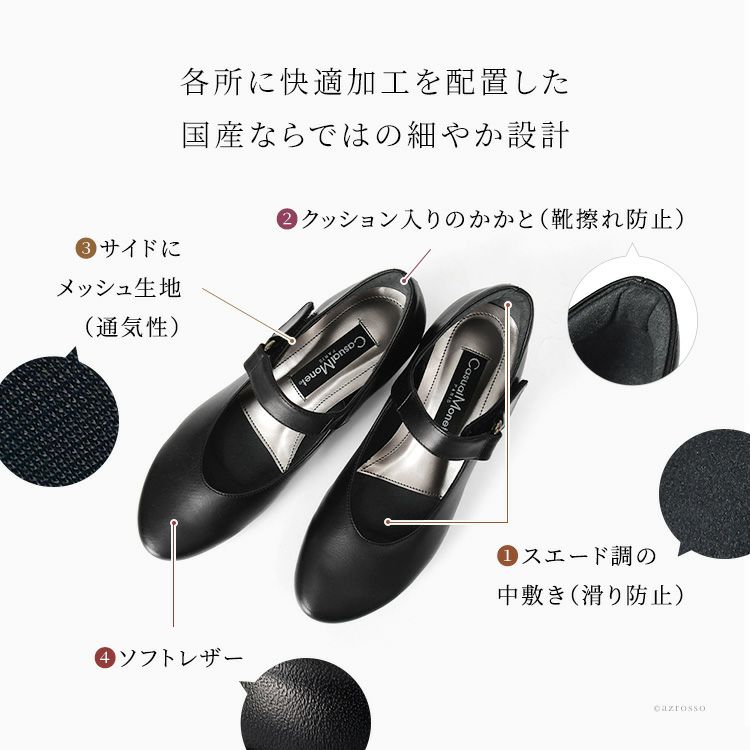 快適で履きやすい日本製ストラップパンプス「Monet モネ 8820」。外反母趾さんも痛くない幅広3E+オブリークトゥのレザーパンプス 共通ブランド画像 商品画像2 商品画像3 商品画像4