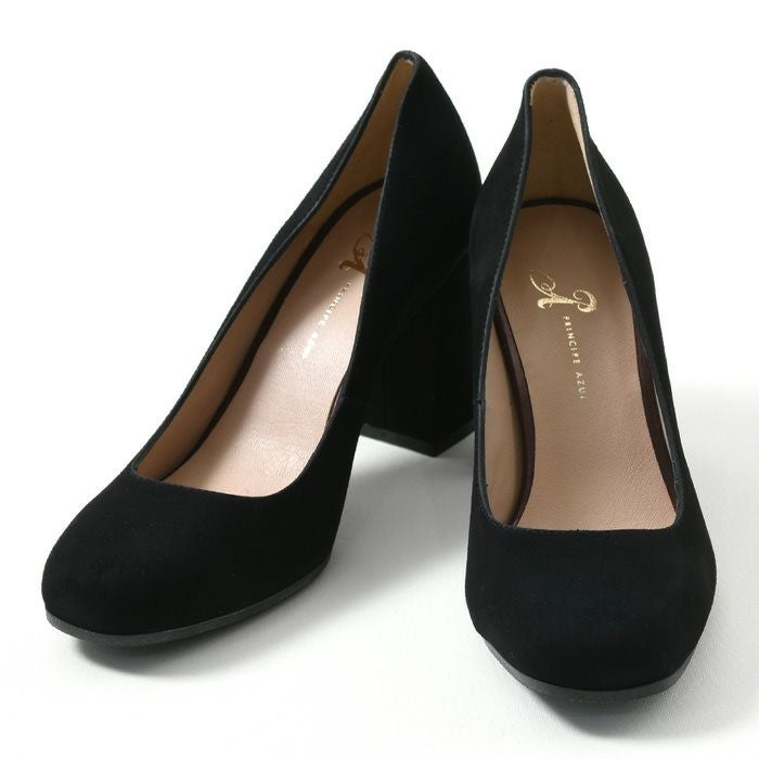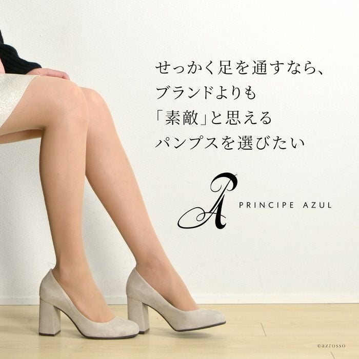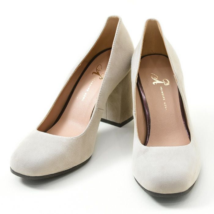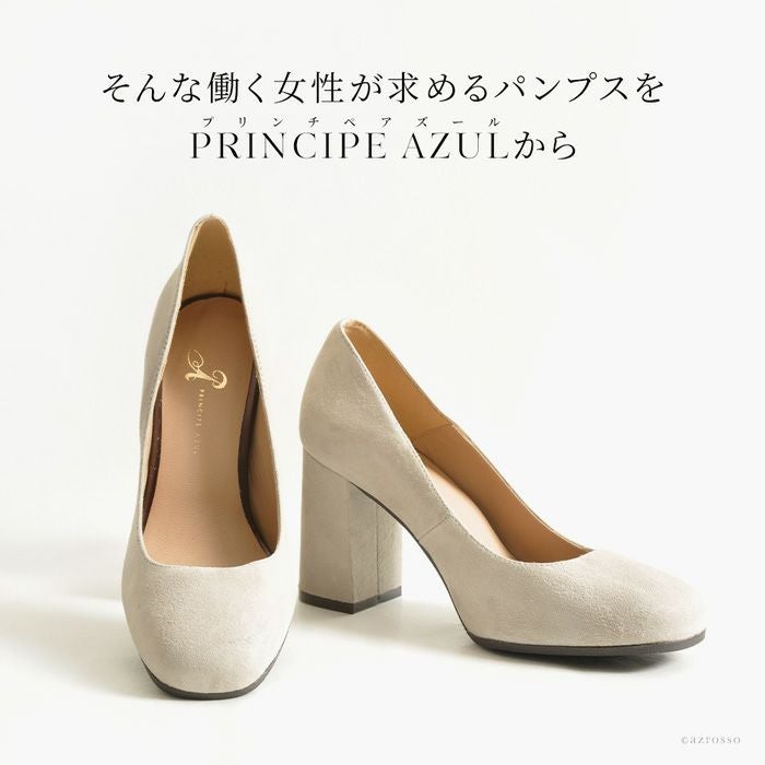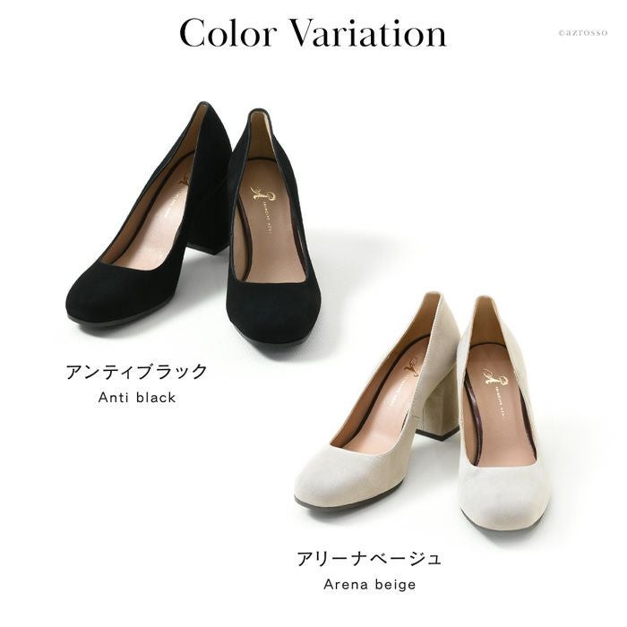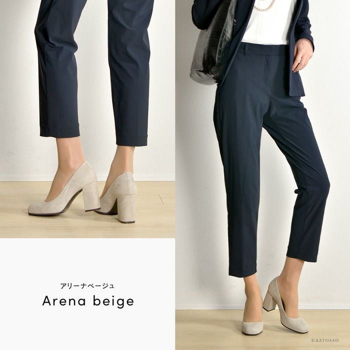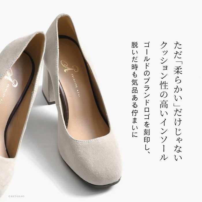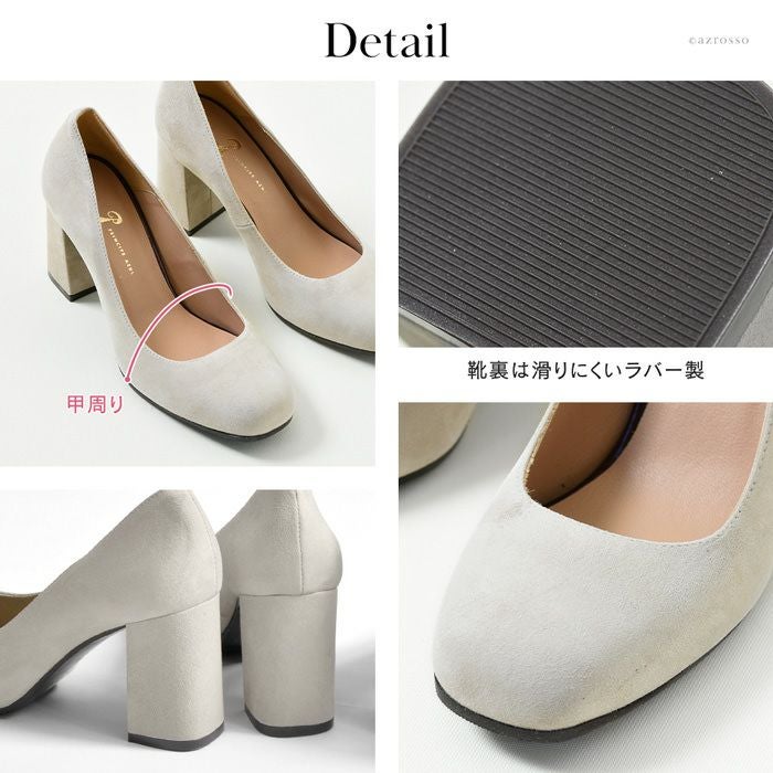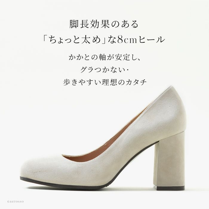 | 残23cm-24.5cm│スエード パンプス 太ヒール スクエアトゥ 本革 8cm チャンキーヒール ビジネス ホワイト ベージュ