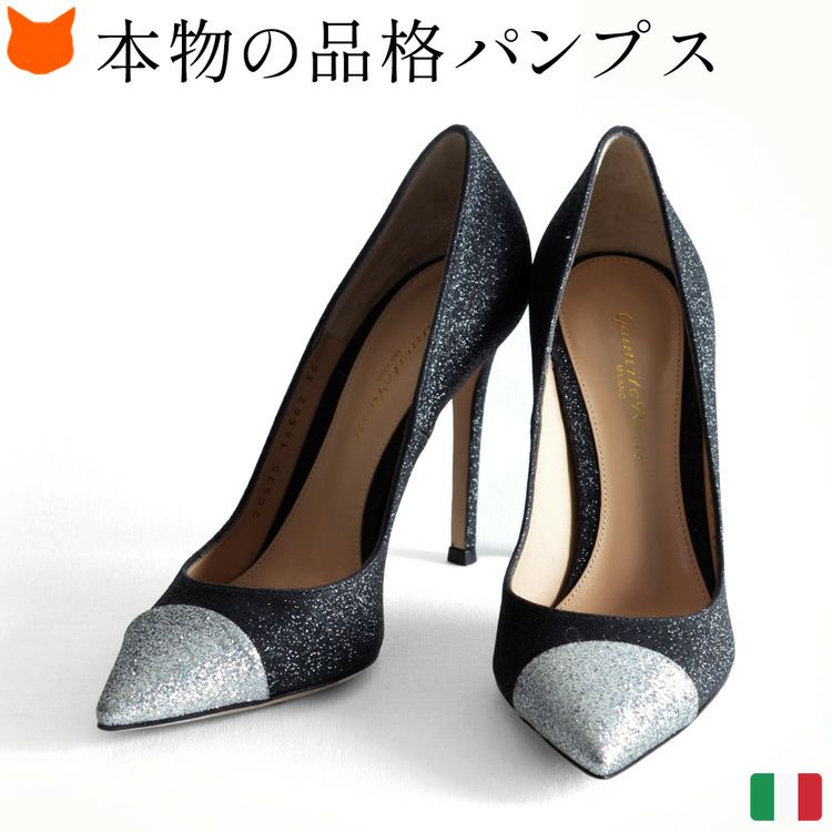 5. 22.5cm-26cm│メタリック トゥ グリッターパンプス ジャンヴィト ロッシ Gianvito Rossi ALLIE ハイヒール 10cm レディース 靴 ブランド きれいめ 小さいサイズ 大きいサイズ ブラック 黒