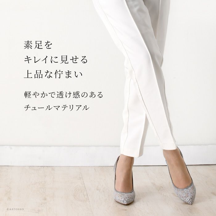 脚をとびきり綺麗に魅せる、透け感あるチュール×華やかなレースのレディースパンプス。9cmハイヒールでも歩きやすいつくり。結婚式やパーティーシーンを飾るオケージョンパンプスとしても 21.5cm-25cm|ヒール9cm チュール レース レザー パンプス|リミットティル2359