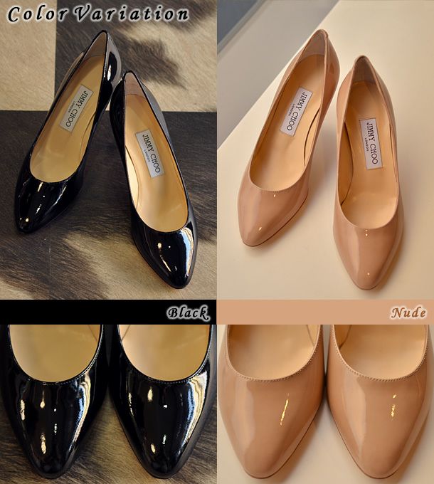 ※特価の為返品・キャンセル・交換無料サービス対応不可。※交換対応は、通常販売時のお買い物通りのご案内です。※サイズ交換希望で、ご交換希望サイズが欠品の場合は返品不可 22.5-25cm|ヒール6cm ROMY ロミー エナメルパンプス ポインテッドトゥ JIMMY CHOO ジミーチュウ ブラック 黒 ベージュ