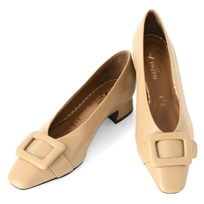 雨、汚れを弾く!歩きやすいソフトレザーパンプス ラバーソールで滑りにくい フォーマルパンプス ビジネスパンプス 21.5cm-25cm|ヒール3cm レザースクエアバックルパンプス 晴雨兼用 リミットティル2359 Limit till 2359