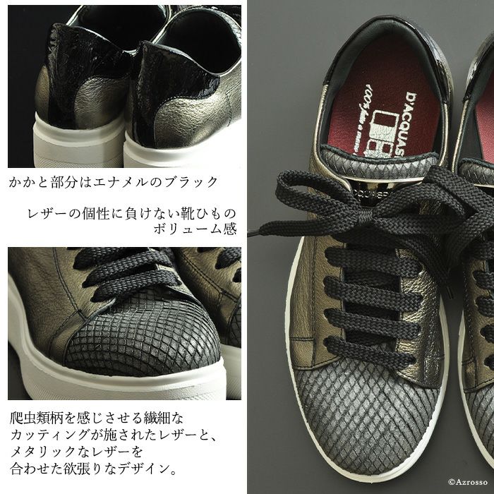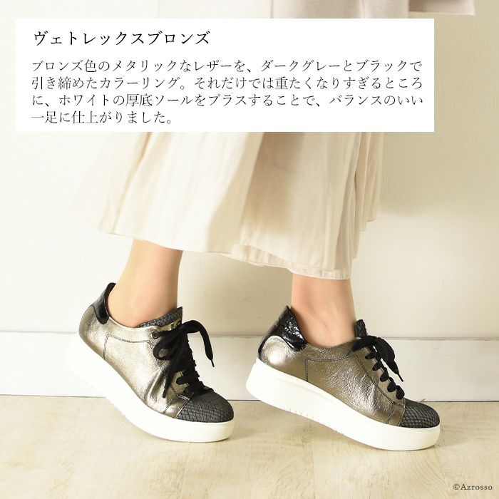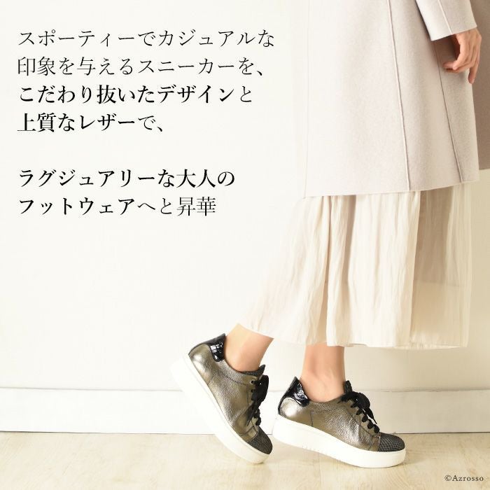22-25cm|メタリック 厚底 スニーカー イタリア製 本革レザー レディース ホワイトソール 小さいサイズ 大きいサイズ
