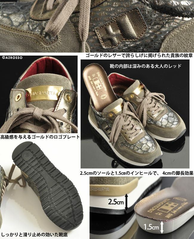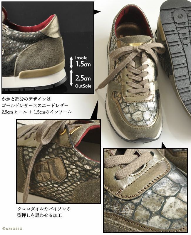 24-25.5cm|パイソンスエード イタリア製 本革レザースニーカー 厚底 レディース インヒール ローカット 大きいサイズ 25cm 26cm