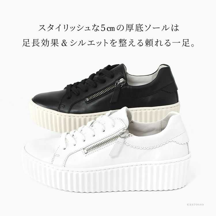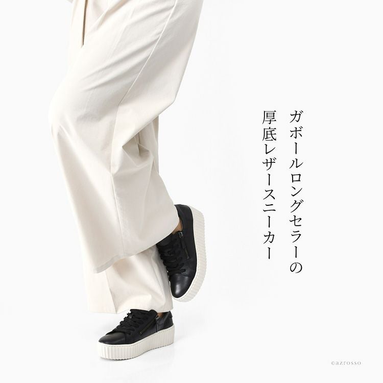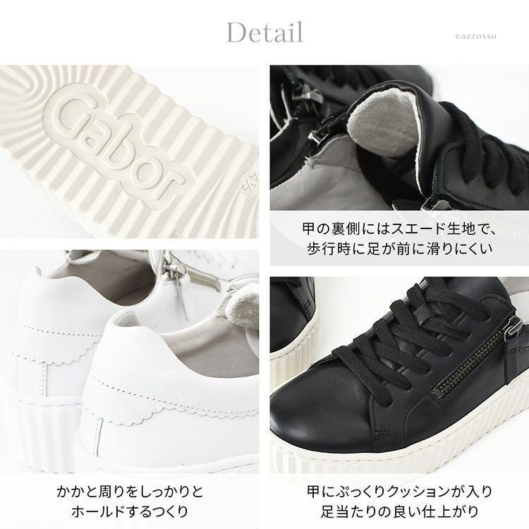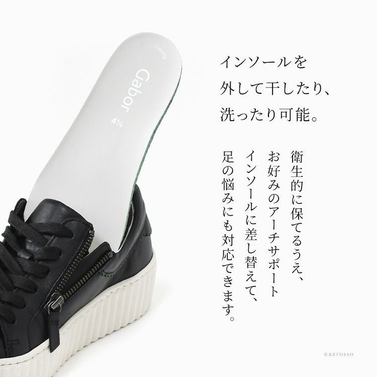 本革スニーカー レディース 3E 幅広 Gabor ガボール 厚底レザーシューズ ファスナー付き