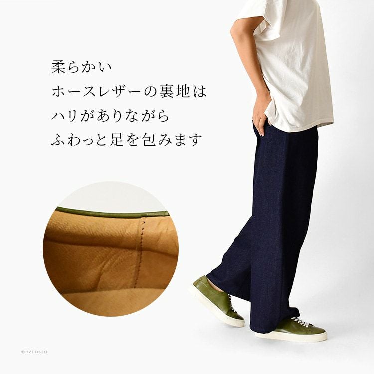 ▼特徴:レザー 本革 レザーシューズ レザースニーカー 栃木レザー 日本製 スニーカー シューズ コートシューズ テニスシューズ コート系 コートタイプ コートスニーカー デッキシューズ デッキタイプ デッキスニーカー ローカット ローテク 靴紐 シューレース 緑 グリーン オレンジ ベージュ ナチュラル