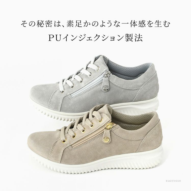 メッシュ&レザーで通気性確保。シューレスで履きやすさも