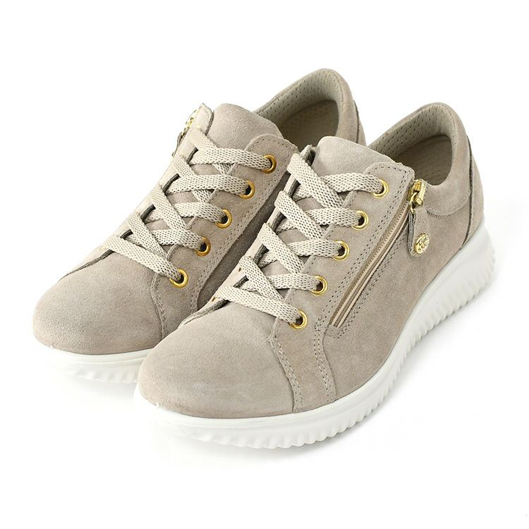上品に輝くソフトゴールドベージュのスニーカー