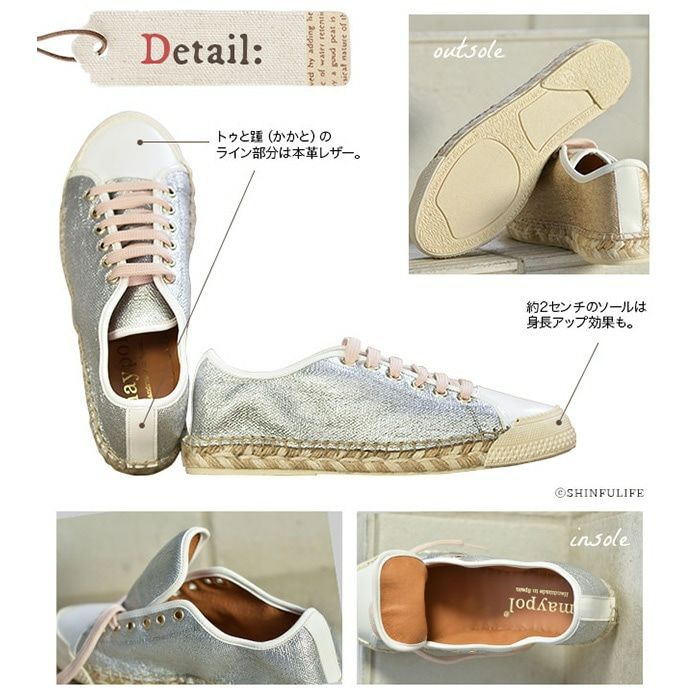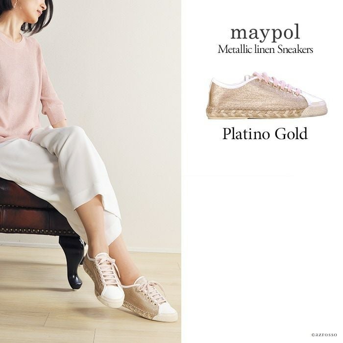 エスパドリーユ スニーカー メタリック 厚底 エスパ レディース ジュート スペイン製 maypol メイポール マイポル 靴 リネン 麻 本革 エスパ 2cm ヒール 2センチ ストーム レザー ゴールド シルバー