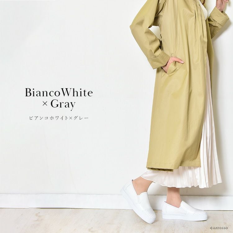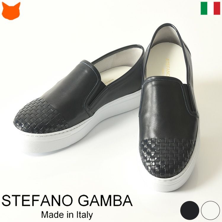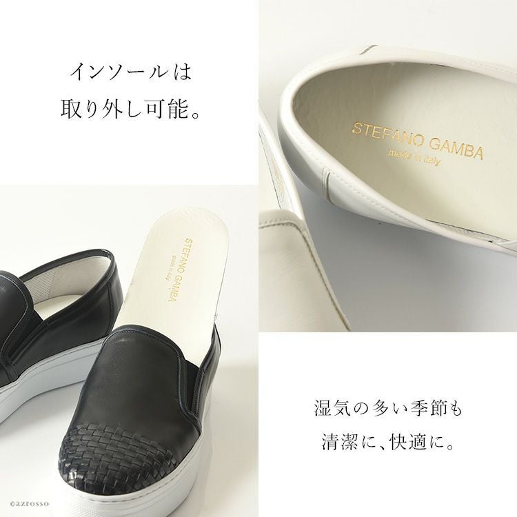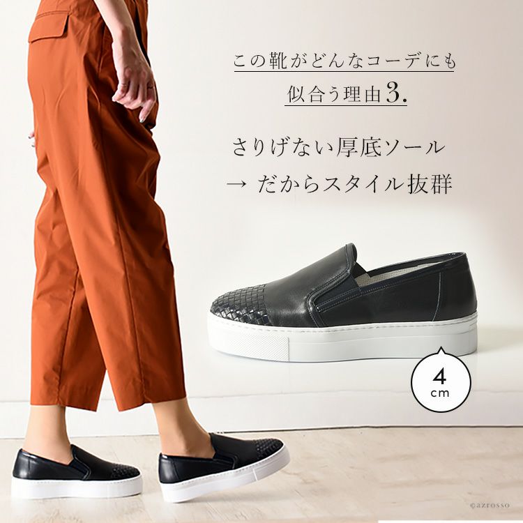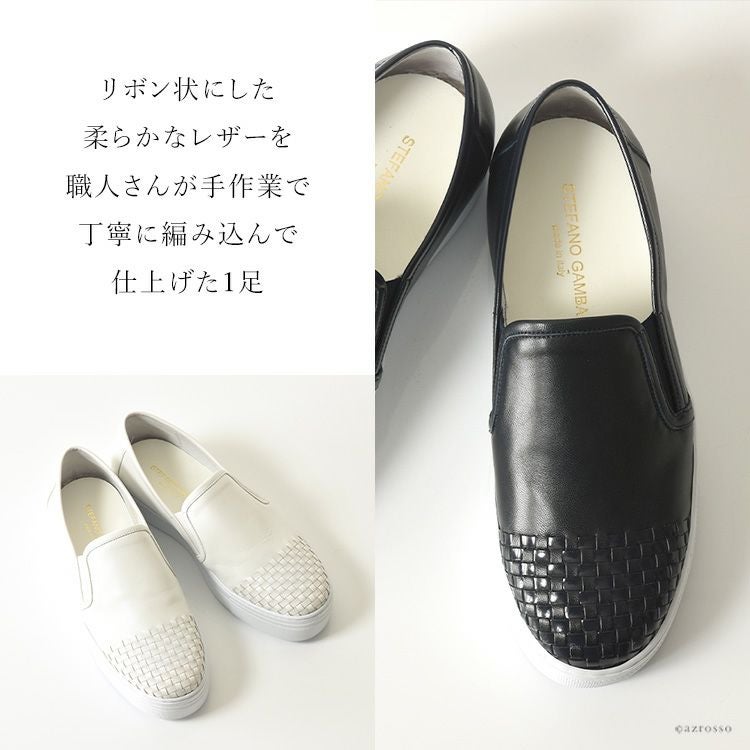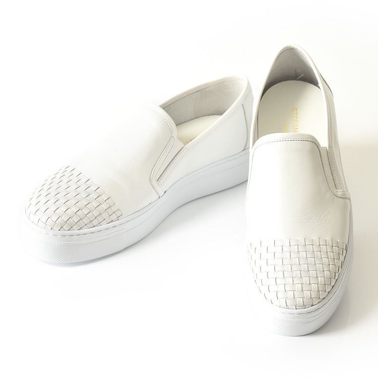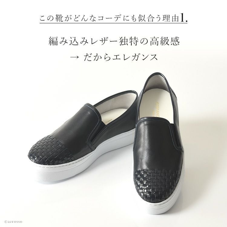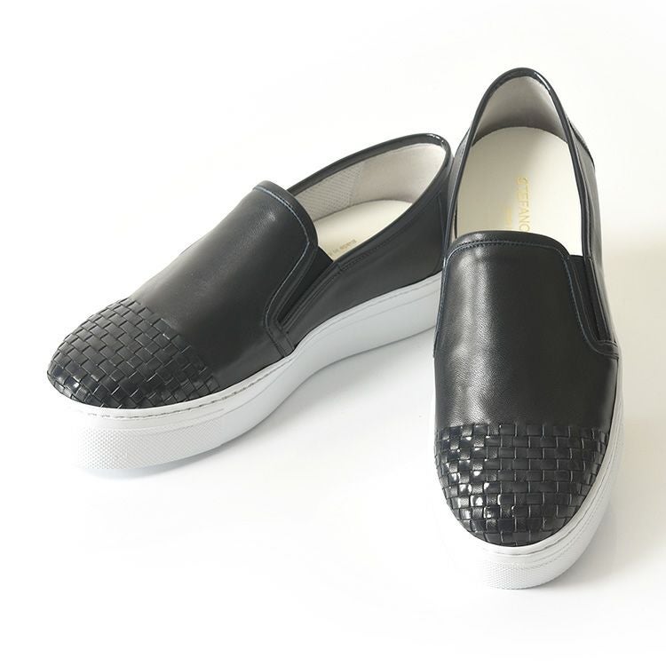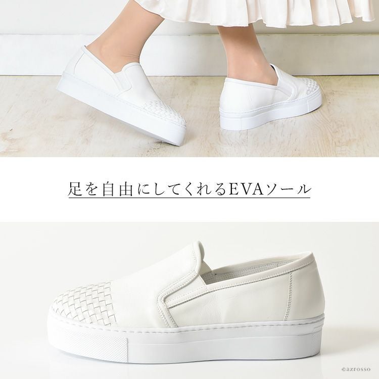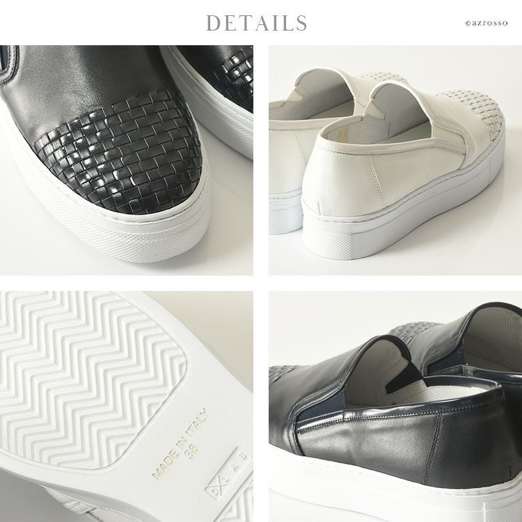 カーフレザー×エナメルレザー スリッポン イントレチャート スニーカー 厚底 白 軽量 ホワイト 本革 ネイビー ブラック 黒