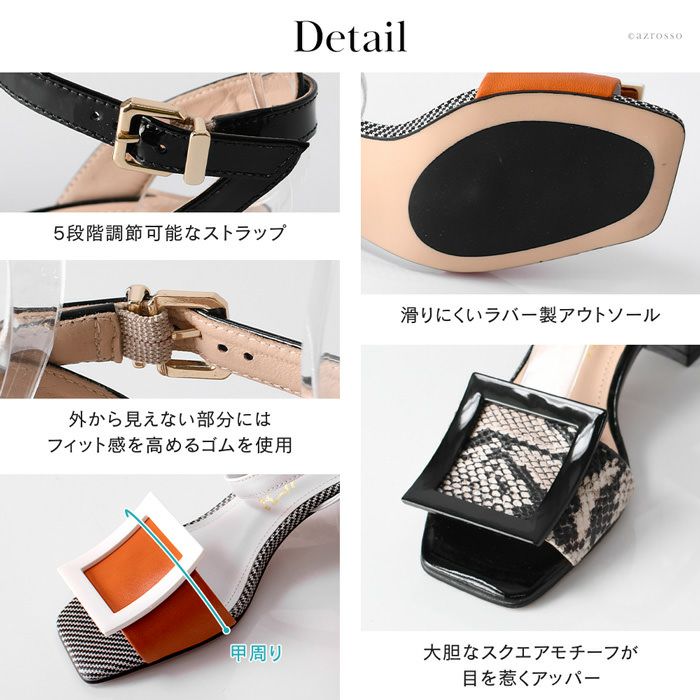 ※バックルモチーフの仕様上、足の形によっては指が痛くなる可能性があります。履き始めは親指の付け根などに絆創膏を貼ってみるのが良いかもしれません。