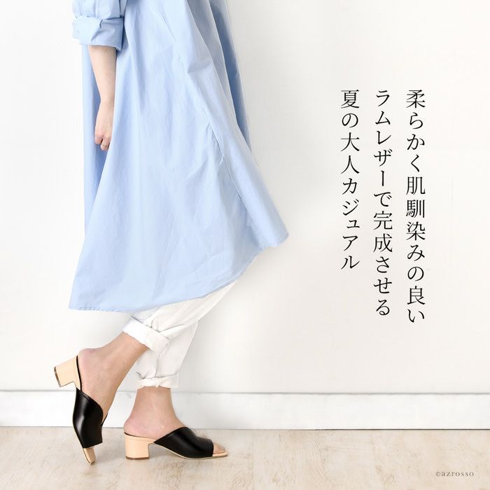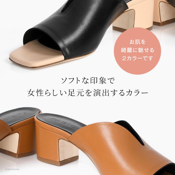 23cm-25.5cm│レザー サンダル チャンキーヒール 5.5cm 本革 Vカット イタリア製 ブランド ファビオルスコーニ FABIO RUSCONI キャメル ブルー