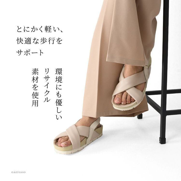 ▼特徴:コンフォートサンダル|厚底|歩きやすい|痛くない|履きやすい|クロスベルト|疲れない|クッション