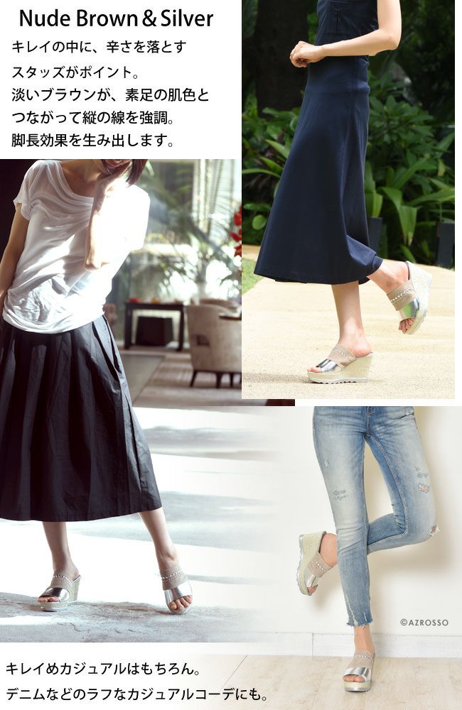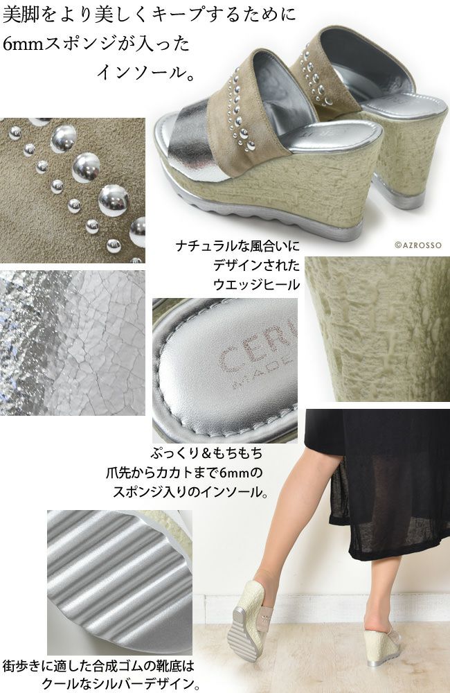 ウエッジ サンダル 厚底 ソール ハイヒール シルバー ブラウン チェルッティ レディース