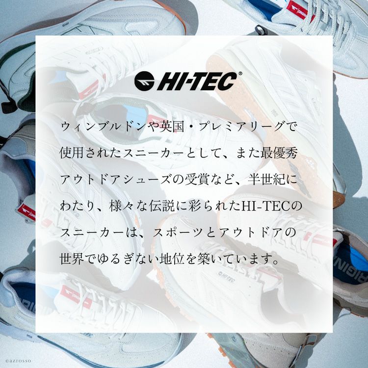 ウィンブルドンや英国・プレミアリーグで使用されたスニーカーとして、また最優秀アウトドアシューズの受賞など、半世紀にわたり、様々な伝説に彩られたHI-TECのスニーカーは、スポーツとアウトドアの世界でゆるぎない地位を築いています。