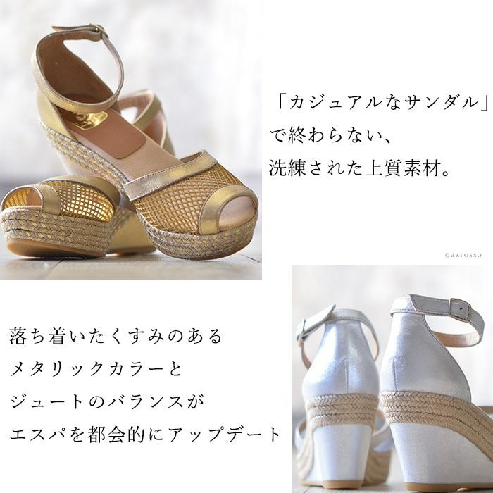 スペインが生んだ世界的な人気のエスパドリーユ ブランド KANNA カンナ メッシュ・ストラップサンダル オープントゥ エスパ ウェッジサンダル サンダル ストラップ ウェッジ レディース ゴールド シルバー カルザノール カスタニエール gaimo ガイモ