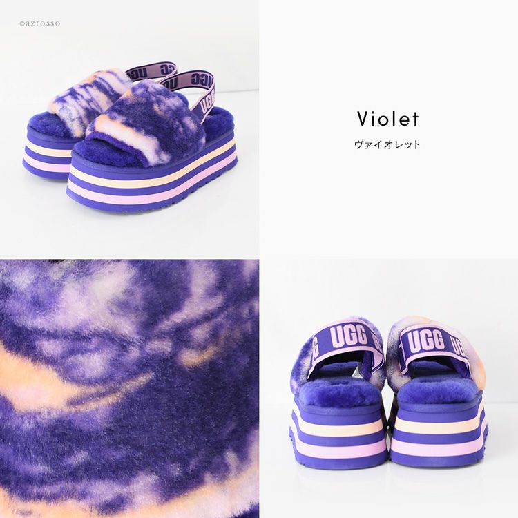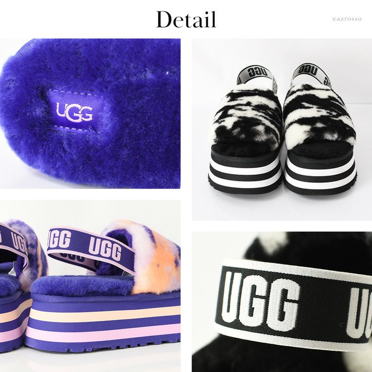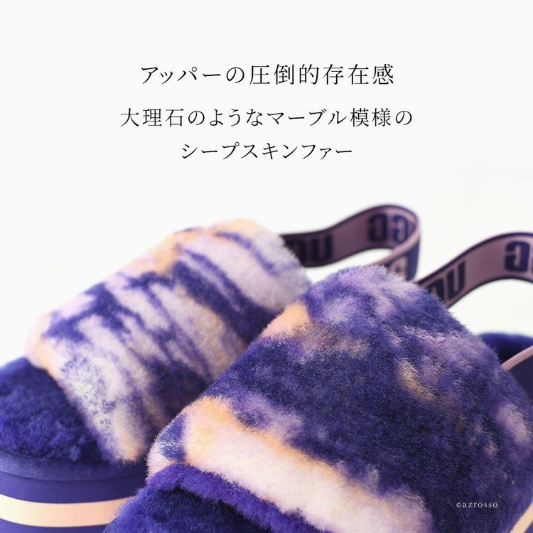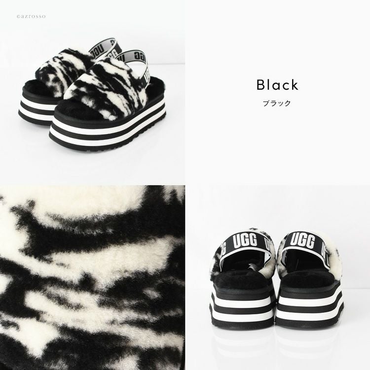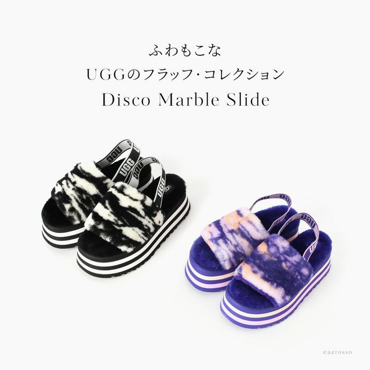 22.5cm-26cm│UGG Disco Marble Slide サンダル 厚底 アグ ファーサンダル フラッフ バックストラップ 正規品 1122032 マーブル模様