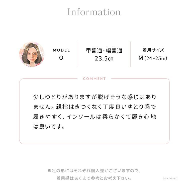 ※足の形にはそれぞれ個人差がございますので、着用感はあくまで参考とお考え下さい。