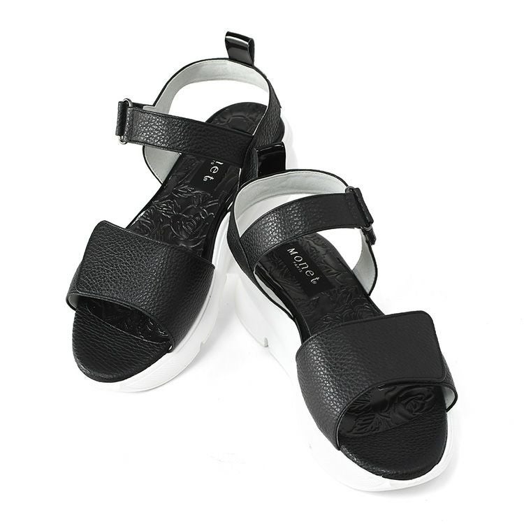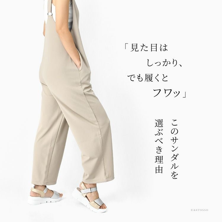 日本製 本革 ダブルベルトサンダル きれいめに履ける 厚底 4E レディース 幅広 超軽量 歩きやすい 疲れない 長時間歩ける 甲高 モネ