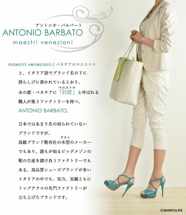 日本ではあまり名の知られていないブランドですが、誰もが知るビッグメゾンの靴の生産を請け負う名門ファクトリーが立ち上げたブランド「ANTONIO BARBATO/アントニオバルバート」から、ワイルドな美貌を見せつけるクロコの10㎝を超えるハイヒールサンダルがイタリアから届きました。