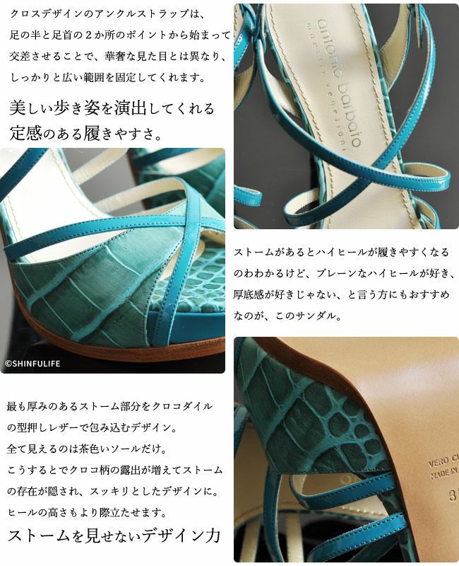 5. ハイヒール サンダル クロコ 型押し レザー ストーム アントニオバルバート ANTONIO BARBATOヒール 12cm 13cm 本革 イタリア製 靴 ブランド クロコダイル 大きいサイズ 小さいサイズ 春 夏 レディース 送料無料