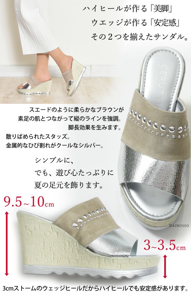 ウエッジ サンダル 厚底 ソール ハイヒール シルバー ブラウン チェルッティ レディース