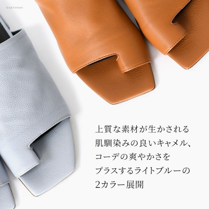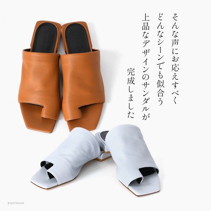 23cm-25.5cm│レザー サンダル ローヒール 2cm 本革 親指リング トングサンダル イタリア製 ブランド ファビオルスコーニ FABIO RUSCONI キャメル ブルー