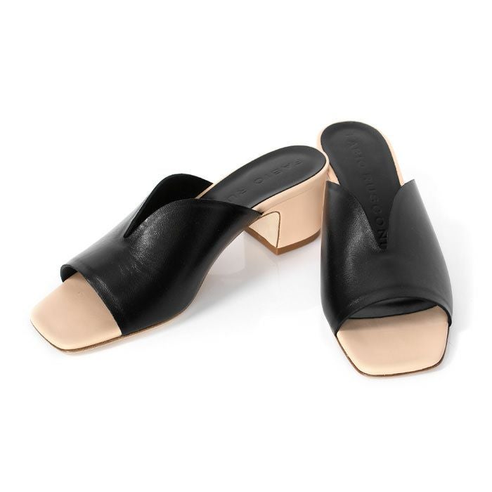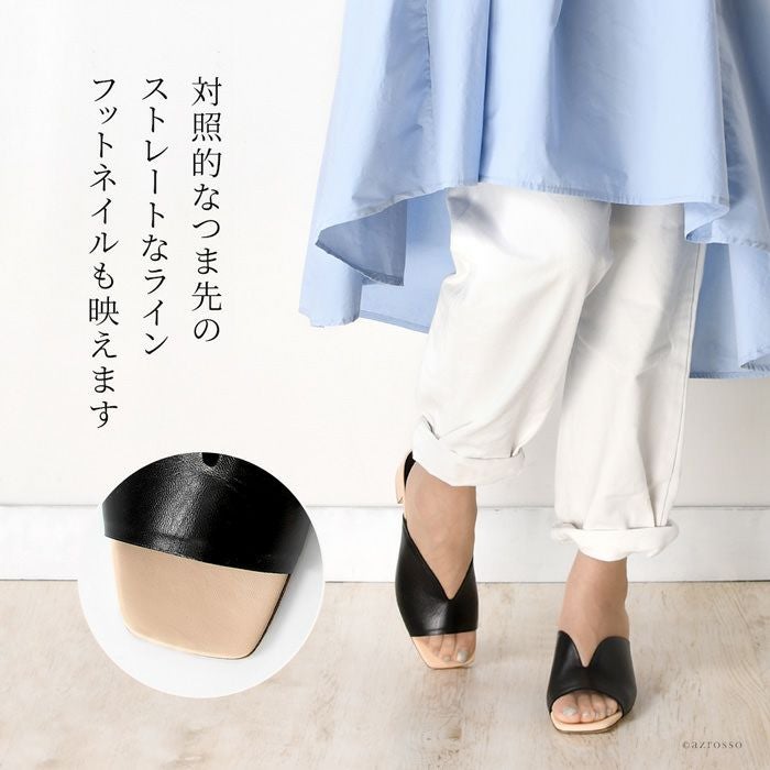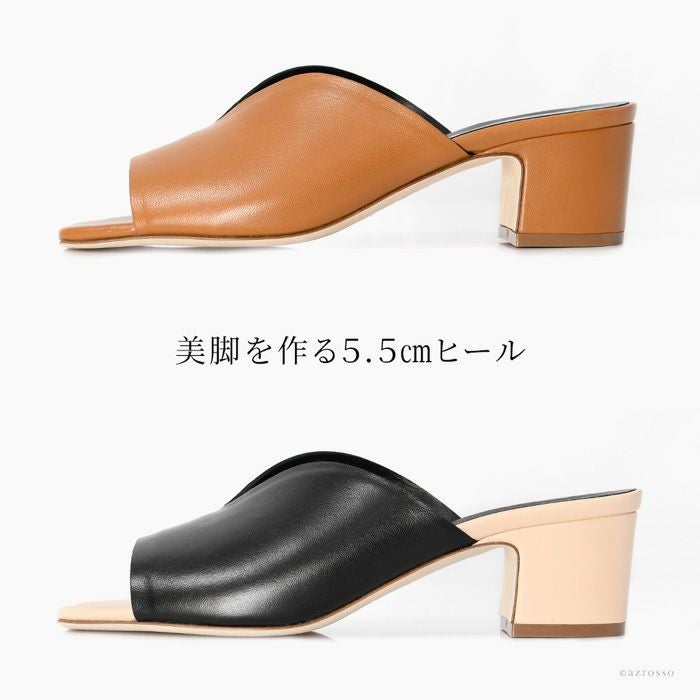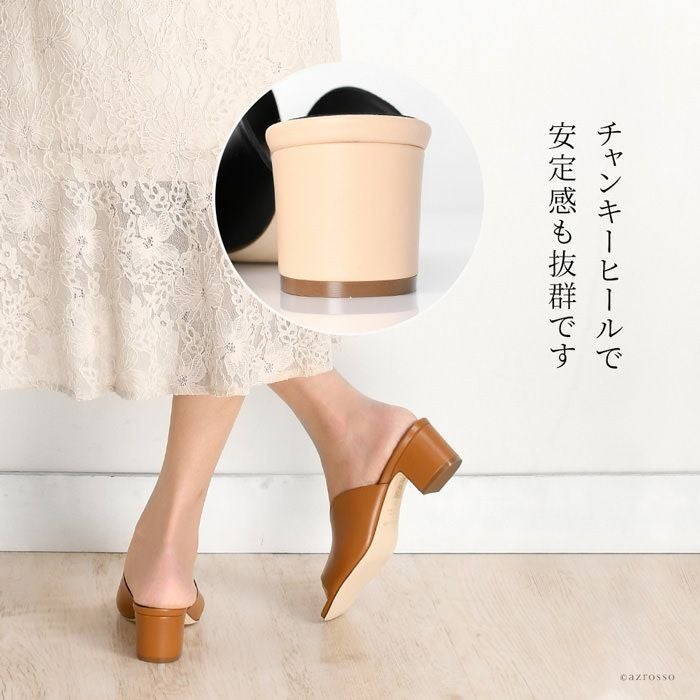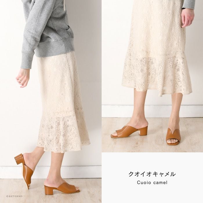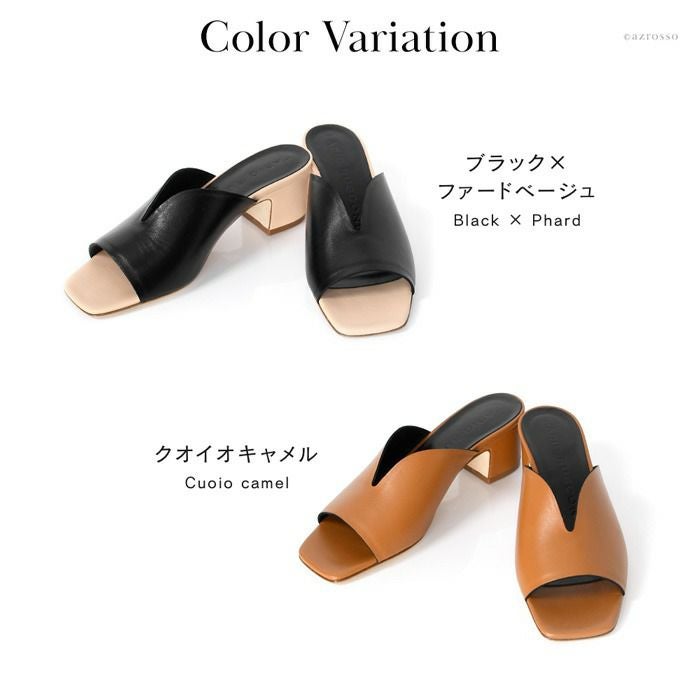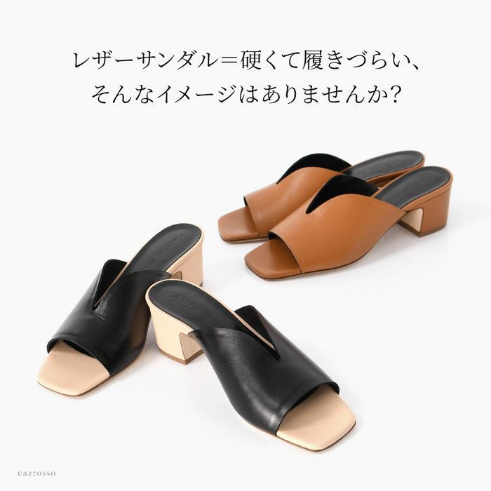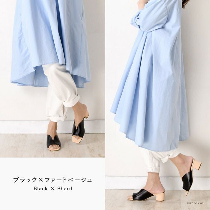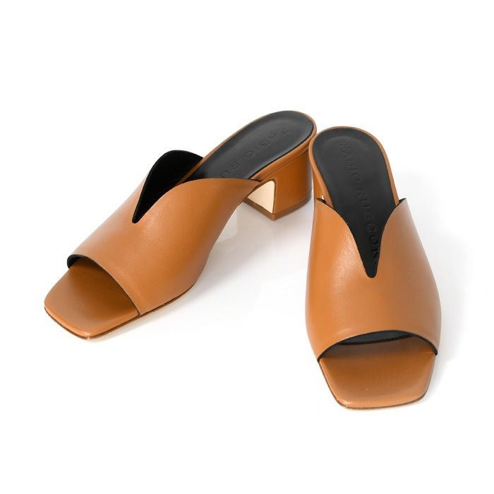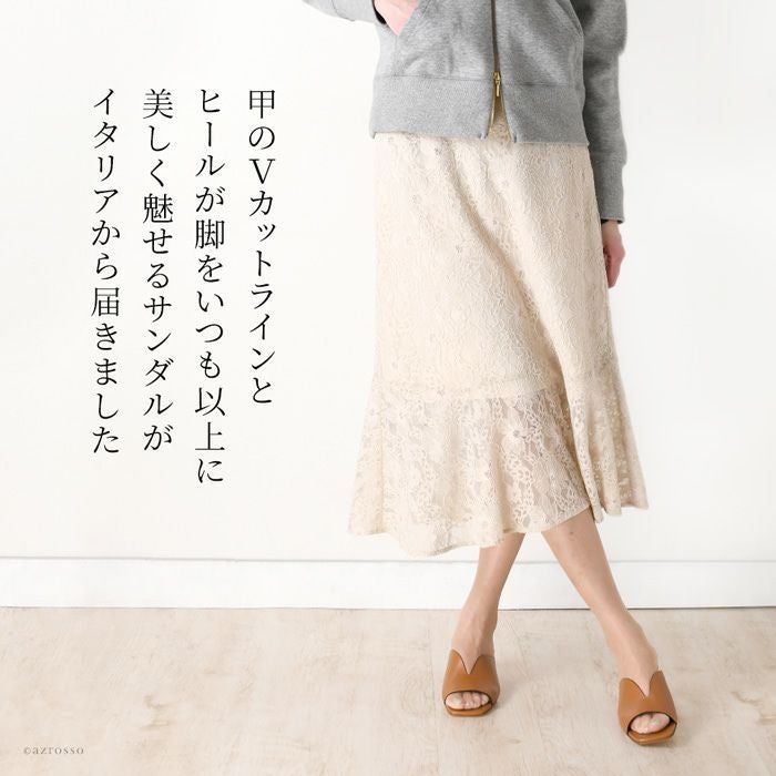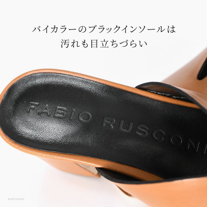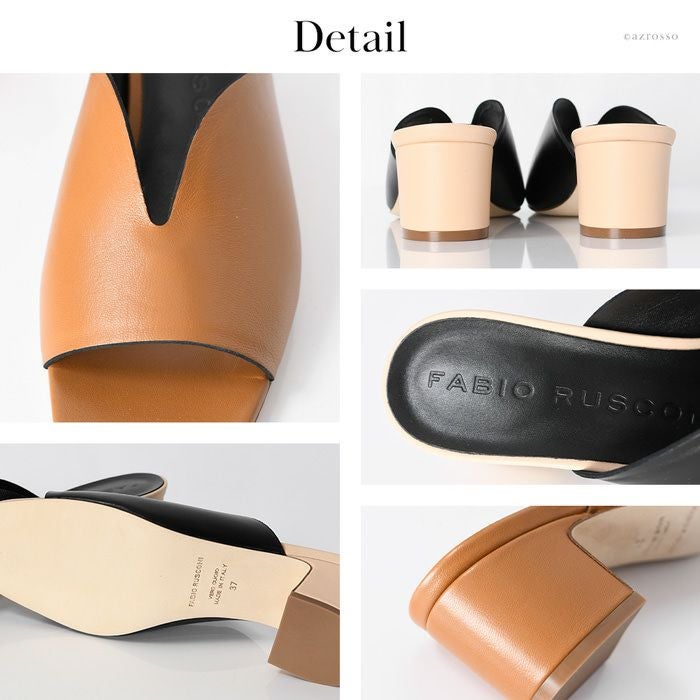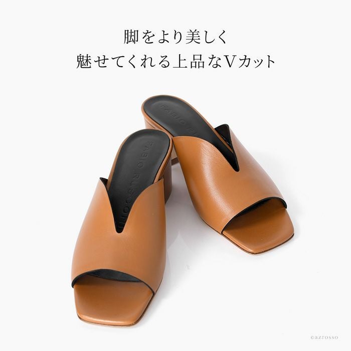 23cm-25.5cm│レザー サンダル チャンキーヒール 5.5cm 本革 Vカット イタリア製 ブランド ファビオルスコーニ FABIO RUSCONI キャメル ブルー
