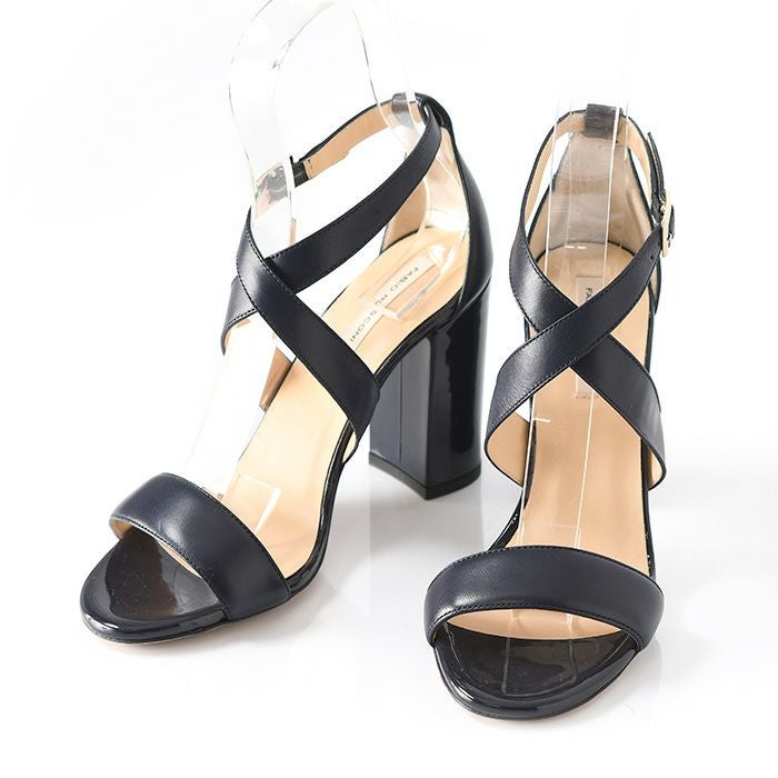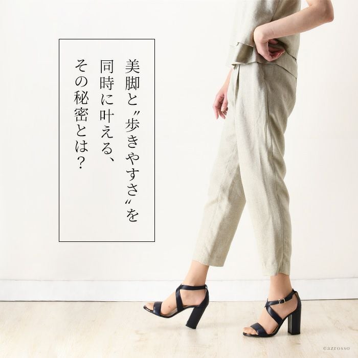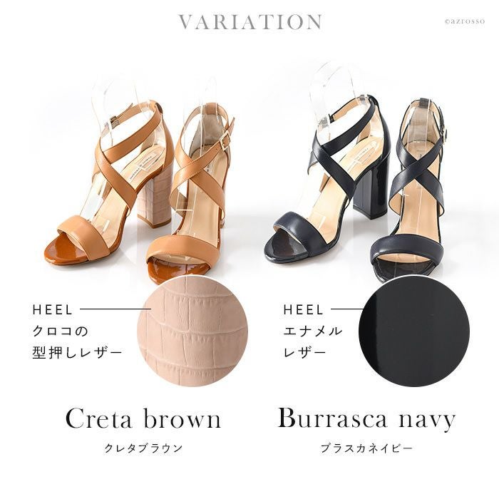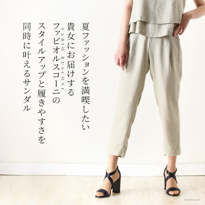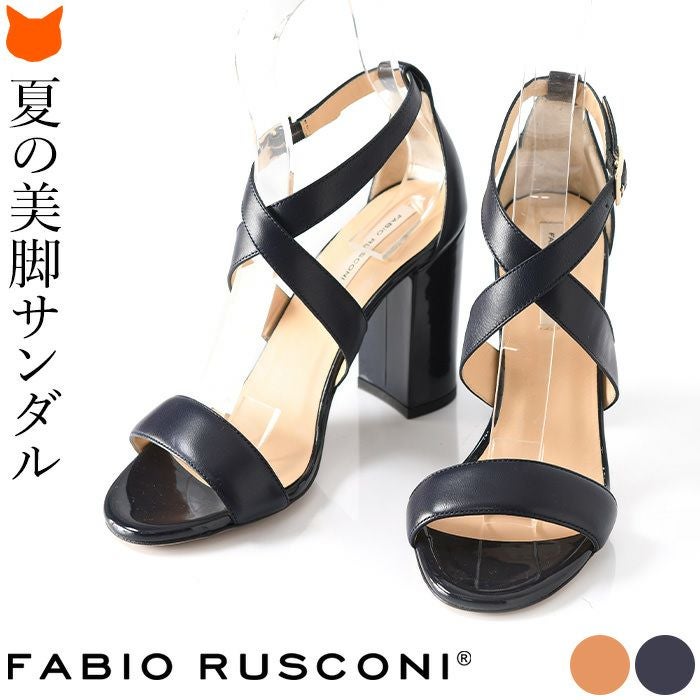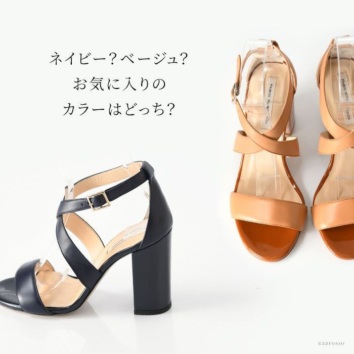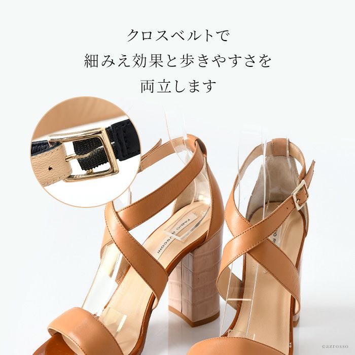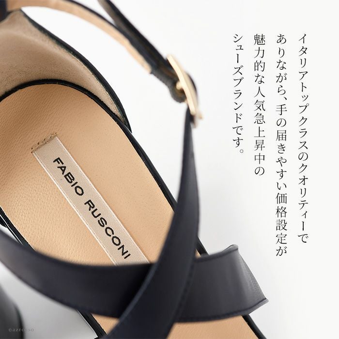 【22-25cm】 ヒール10cm クロスベルト サンダル レザー チャンキーヒール イタリア製 ファビオルスコーニ FABIO RUSCONI