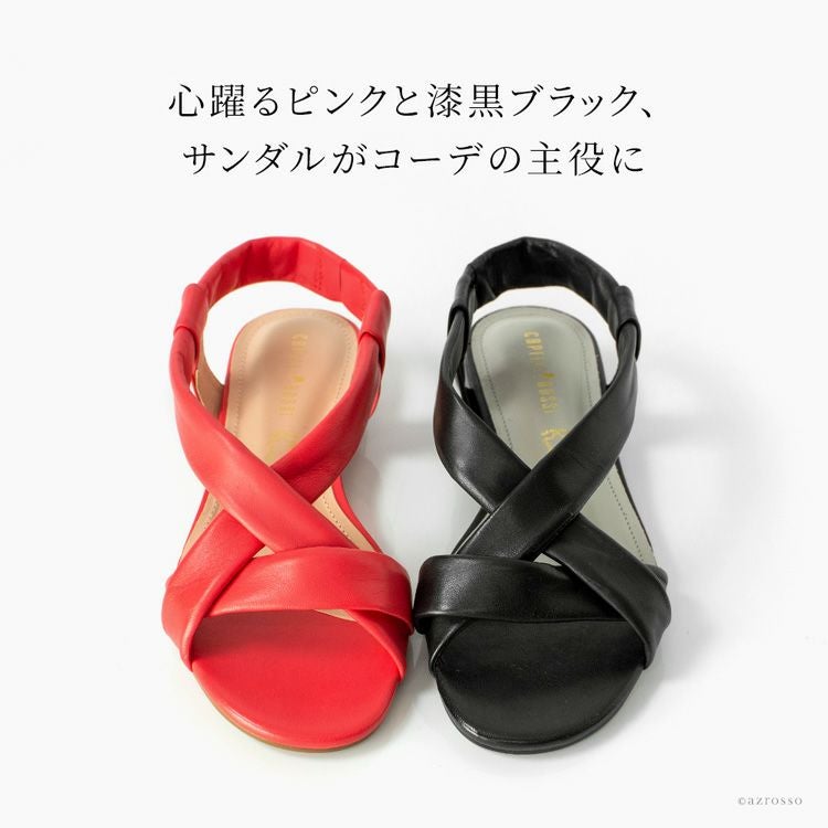 ▼特徴:フラット|ぺたんこ|ローヒール|オープントゥ|クロスベルト|バックベルト|歩きやすい|疲れにくい|痛くない|柔らかい
